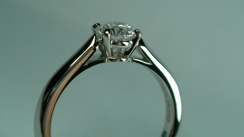デザインはシンプルな立て爪タイプ ・カルティエのソリテールタイプのデザイン