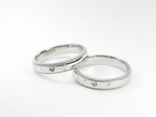 センターには、ハートに形取った枠にダイヤモンドをセットして、イニシャルを彫り込んだ世界に一つの結婚指輪になっております。