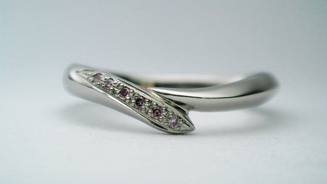レディス:pt950ハードプラチナ・ リング 表・ピンクダイヤ6P