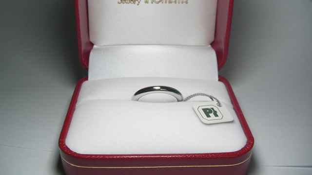 ・幅3㎜の丸のリングで、PT950の素材で出来上がりは10gもある出来上がりになっております。
