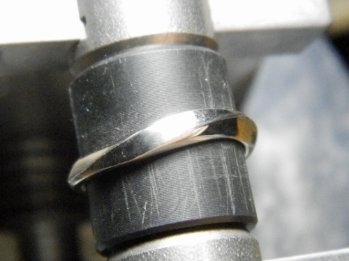 プラチナ(Pt950)素材のヒネリの流れるラインで指先を引き立たせてくれるお客様のイメージで作らさせて頂きました。