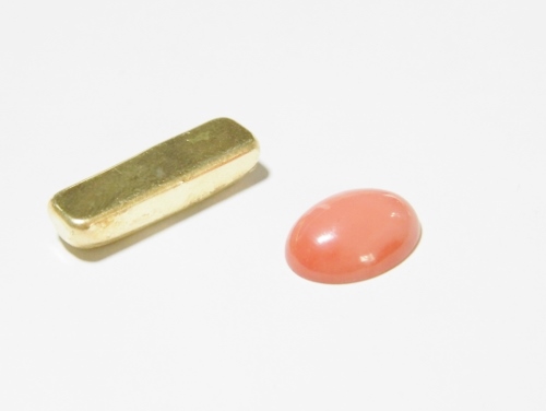 今回のご紹介致します仙台で制作のジュエリーリフォームは、形見のK18サンゴのペンダントトップと、K18の月形甲丸リングを使用したリフォームです。