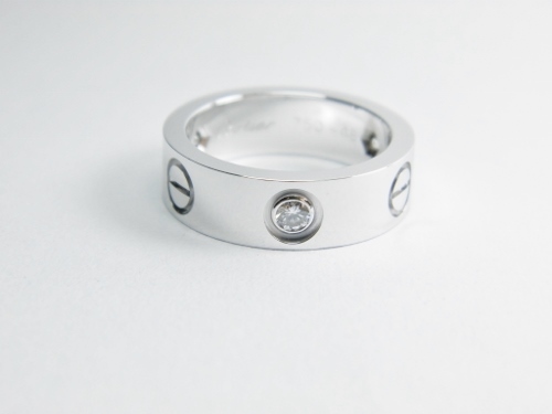 Cartierブランドリングの仕上げ直しのご紹介です。 お持込み頂いたのは、カルティエの定番・ラブDiaリング・ホワイトゴールドのリングです。